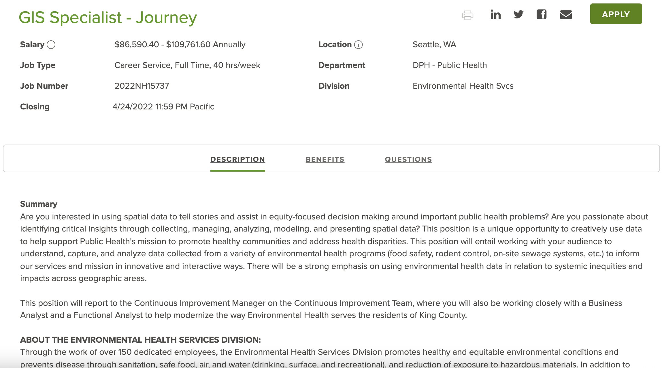Berkeley Geography On Twitter Job Opportunity Thanks For The Heads Up Alexis King County Wa Is Hiring A Gis Specialist 86k 109k Live In Or Around Seattle Great Benefits Read More